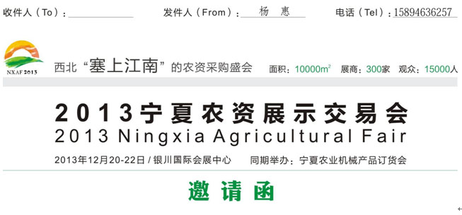 2013寧夏農資展示交易會參展報名表(代合同)