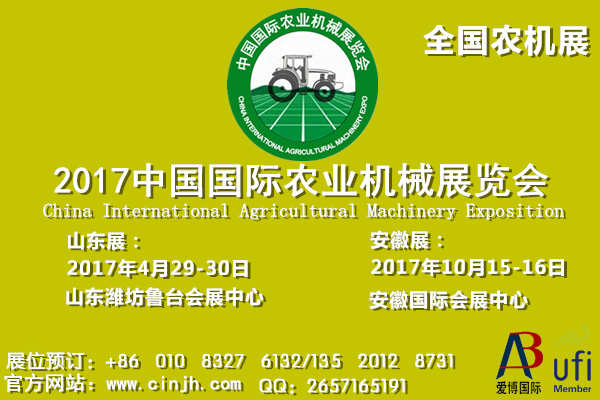 隨著國家十三五規劃明確提出加快發展都市現代農業,三產融合助力都市現代農業快速發展,提高農業技術裝備和信息化水平,全面實現現代農業科技創新推廣體系,加快推進農業機械化,加強農業與信息技術融合,發展智慧農業,提升農業技術裝備水平。為響應國家政策規劃,推動我國農業現代化快速發展,市場供應產品種類顯著增加、產品向多元、優質、功能化方向發展,打造全球最大的農業高新科技展示交流與采購平臺,由北京愛博國際展覽有限公司聯合發起的2017第六屆中國山東國際農業機械展覽會將于2017年4月29-30日在山東.濰坊魯臺國際會展中心盛大開幕,屆時歡迎參觀參展。