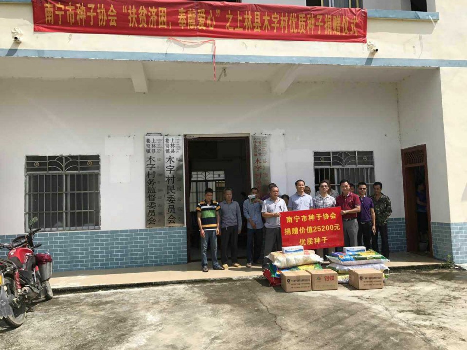 近日,南寧市種子協會“扶貧濟困,奉獻愛心”之優質種子捐贈儀式在上林縣木字村舉行。