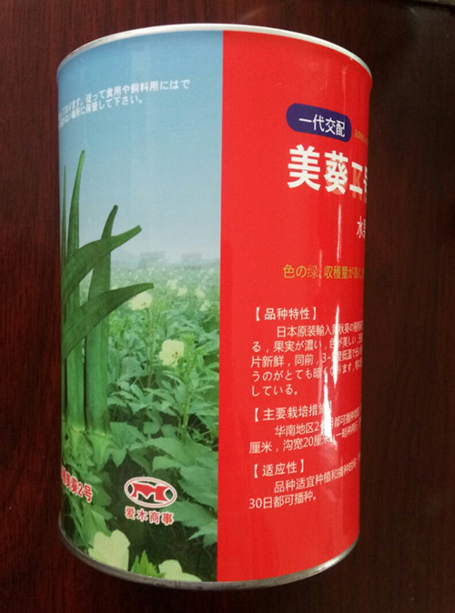 日(ri)本原裝鐵罐進口水果(guo)秋葵種子美葵二號,植(zhi)株長勢旺盛,果(guo)實濃(nong)綠,色澤亮(liang)麗,五角形,果(guo)實修長,萼片新鮮,賣相(xiang)好,3-5度(du)低溫長時間(jian)儲存不易變(bian)黑(hei),特備適(shi)合國內鮮銷(xiao)市場。