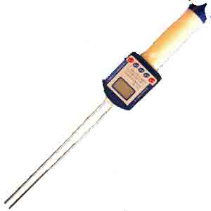 3、測(ce)量:把探(tan)桿插(cha)入(ru)糧食(shi)中,插(cha)到手(shou)柄根(gen)(gen)部(bu),根(gen)(gen)據所測(ce)糧食(shi)品種,從(cong)表盤(pan)讀出指針相應的指示(shi)值(zhi)(zhi),加減溫度(du)校正值(zhi)(zhi),即為所測(ce)糧食(shi)水分(fen)測(ce)量值(zhi)(zhi)。