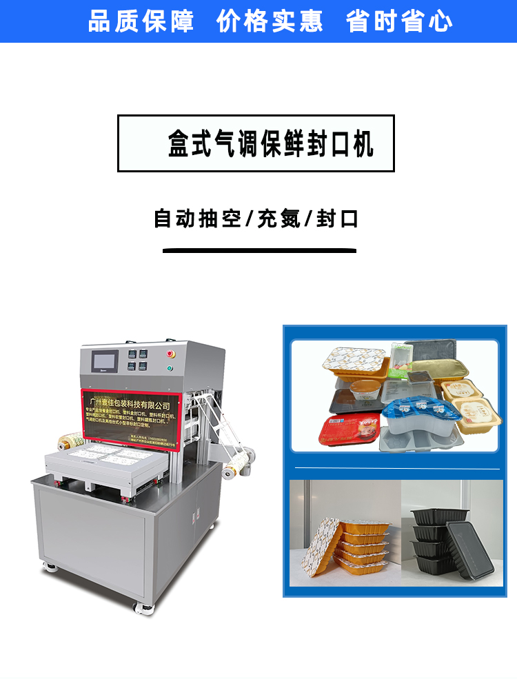 機器特點:大功率抽真空系統,可把盒子內的氧氣抽到較好,使用PLC及人機界面操作系統,各項參數設定直觀精確,操作便捷,運行穩定,產品保鮮期長,質量可靠,包裝性能穩定,效率高,適用性廣。