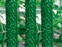 多,瓜條生長速度快。早熟、抗霜霉病、白粉病、枯萎病,耐低溫、弱光。瓜條順直皮色深綠、有光澤,瓜把短,心腔小,刺密、無棱,無黃頭,瘤適中,瓜長