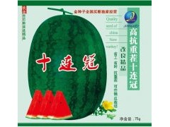 西瓜品種重大突破,高抗枯萎病,重茬多年基本不死苗,是20年來全國瓜農唯一可信賴的品種,是歷屆挑戰吉尼斯大瓜獎的首選唯一品種,經營必富、種植必發,被譽為“金種子”。本品為雜交一代種,表現為抗病高產優質,生長勢強,適應性廣,易于座瓜,瓜形橢圓,皮色為墨綠皮上鑲嵌黑色蛇形花紋。為大果型品種,平均單瓜重20斤以上,最大單瓜可達45公斤以上,畝產一般在13000斤左右。屬中熟品種,花后30天成熟,瓤色大紅,肉質細嫩多汁,風味獨特,清新爽口,中心糖度13度以上,瓜皮堅韌,耐貯、耐運,適合遠途銷售。本品高抗枯萎病,可抑制炭疽病、病毒病及早晚疫病等發生。