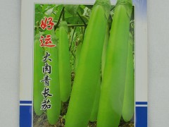 中早熟品種,生長勢強,果實直棒狀,果長30cm-35cm,平均單果重300-350g左右,采收期5-6個月。果(guo)色青緑光亮,品(pin)質佳(jia),耐(nai)儲運,無畸(ji)形果(guo),商品(pin)性好,抗(kang)灰(hui)霉病(bing),耐(nai)黃萎病(bing),畝產量可達6000kg。