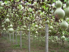 (5)小丑。長勢一般,葉片中等,每株結果8-10個。果實皇冠或佛手果形,皮色有白色、黃色等,橫徑8-10厘米,長12-15厘米,單果重150克