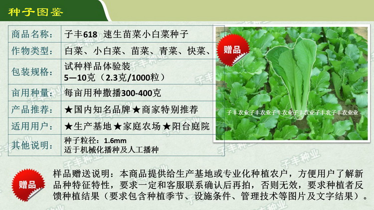 » 子豐618精品小白菜良種好吃的蘸醬菜速生苗菜養生菜種子