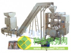 此機組包含了VFS7300全自動立式包裝機,CJS 2000全自動電子稱量機,DT5 Z型斗式提升機,DT5 傾斜式斗式提升機,ZB2000(一體式)真空包裝機組以及成品輸送機。該機組實現了自動送料,計量,充填,抽真空,封口,整形,打印,沖孔,計數,成品輸送與一體。機器的長期正常穩定運行。該機組廣泛應用于大米等谷物類產品的真空包裝,袋型美觀,密封效果好,密封時間長。