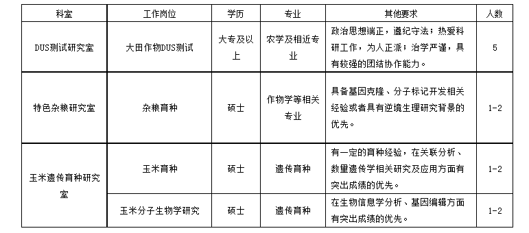 | 根據科研工作需要,河南省農業科學院糧食作物研究所擬招聘科研輔助人員,相關要求如下: