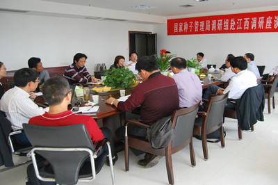 在南昌調研座談會上,南昌市、宜豐縣、永修縣種子管理局圍繞貫徹落實國發[2011]8號文件和贛府發[2011]15號文件、兩證辦法以及種子法等內容,暢所欲言;江西現代種業、江西先農種業、江西天涯種業和江西金典種業圍繞兩證管理辦法,匯報了企業現狀以及下一步打算。吳國昌局長強調指出種子法律法規尚不健全、基層種子管理部門能力較弱、工作經費不足等是當前急需解決的問題。要求各級種子管理部門認真貫徹落實國務院、省政府有關種業發展重要文件,同時希望得到農業部種子管理局的支持,盡早全面的實施縣級種子監管中心項目。吳曉玲處長充分肯定了江西的種子管理工作,同時要求各級種子管理部門要用足用好國家種業政策,積極爭取各級政府的支持,同時還要加大兩證管理辦法的學習培訓,強化企業重組、整合種質和人才資源,全面推進以企業為主體的商業化育種模式,促進江西種業持續穩定的發展。省種子管理局班子成員及業務科室負責人參加了座談會。