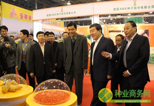 11月10日下午,農業部副部長牛盾在省長助理邵國荷的陪同下,巡視第四屆中國國際種業博覽會暨合肥農資會展館。農業部計劃司副司長周應華,農業部種子局副局長馬淑萍(ping),省農委副主任劉永(yong)春、王華(hua)陪同檢(jian)查(cha)。
