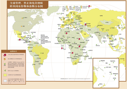 全球管理、禁止和允許種植轉基因農作物和食物分布圖