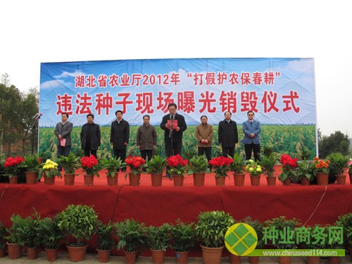 湖北省種子集團總公司董事長袁國保代表全省種子企業作了依法開展種子生產經營的承諾,并表示將抓住當前機遇,做大做強我省種子企業。全省違法種子現場曝光銷毀活動,是落實全國和全省農資打假專項治理行動部署的一項重要行動,標志著全省種子執法年和春季種子“打假護農保春耕”專項行動的全面啟動。活動現場銷毀了近年來查處存在問題的水稻、玉米、棉花品種57個,共計6855公斤,主要涉及假冒偽劣、無證生產經營、未審先推等違法行為。