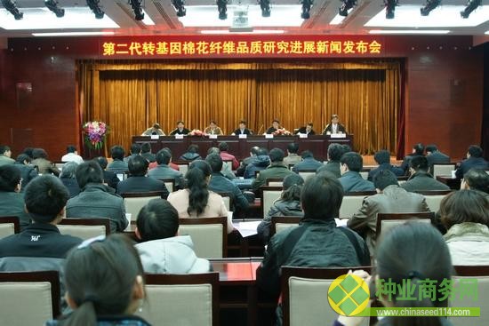 由中國農業科學院棉花研究所聯合全國40多家科研、教學單位,經過多年的協作攻關,成功創制了優質纖維、優質大鈴轉基因棉(mian)花(hua)種質新(xin)(xin)材料,標志著(zhu)我國第二代(dai)轉(zhuan)基因棉(mian)花(hua)新(xin)(xin)品(pin)種研(yan)究取得(de)重大(da)(da)突破。3月18日,棉(mian)花(hua)所在京召開(kai)新(xin)(xin)聞發布會(hui)(hui),介紹了第二代(dai)轉(zhuan)基因棉(mian)花(hua)研(yan)發歷程及(ji)最新(xin)(xin)研(yan)究成果。農(nong)(nong)業(ye)部副部長、中國農(nong)(nong)科院院長李家洋出(chu)席會(hui)(hui)議并講話(hua)。來自北京大(da)(da)學(xue)(xue)、中國農(nong)(nong)業(ye)大(da)(da)學(xue)(xue)、浙江大(da)(da)學(xue)(xue)、西南大(da)(da)學(xue)(xue)、華中農(nong)(nong)業(ye)大(da)(da)學(xue)(xue)、南京農(nong)(nong)業(ye)大(da)(da)學(xue)(xue)、中國農(nong)(nong)科院等單位的60多名代(dai)表參加會(hui)(hui)議。