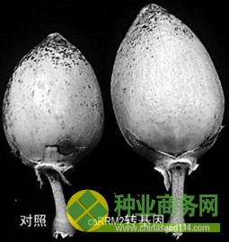 復旦大學課題組與中國棉花研究所李付廣研究員課題組合作精心設計,將csRRM基因經過改造后導入棉花,至今已經獲得一批在棉花育種和生產上具有極高應用價值的轉基因棉花品系。與對照組棉花相較,平均單鈴(即棉花果實,可從中抽取棉纖維)重從5.5克提高到7.5克,纖維平均長度由30.5毫米提高到33.5毫米。此外,由于棉花生殖生長與營養生長同步進行,很容易因植株營養供給跟不上而掉鈴。csRRM轉基因棉花因生長勢強,結鈴率比一般品種提高20%以上,在高產、優質品種培育方面具有較強的應用潛力。