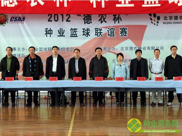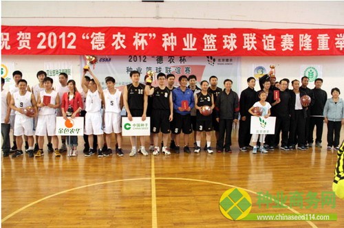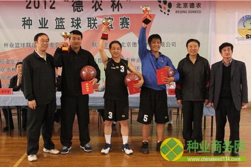 4月22日下午,第四屆種業籃球聯誼賽塈2012“德農杯”種業籃球聯誼賽在華北電力大學籃球館落下帷幕。農業部種子管理局局長張延秋、副局長馬淑萍、全國農技中心副主任鄧光聯、北京市種子管理站副站長趙青春、北京市農業技術推廣站副站長曹之富、北京德農種業有限公司副總裁呂楠、中國種子集團有限公司總經理張學工、北京金色農華種業科技有限公司總裁李紹明、北京奧瑞金種業股份有限公司副總裁李伯浪等領導出席閉幕式,并為獲獎球隊和個人頒發獎杯和證書。聯誼賽組委會主席鄧光聯代表組委會致閉幕辭,組委會副主席呂楠代表承辦單位致辭,張延秋局長宣布聯誼賽閉幕。