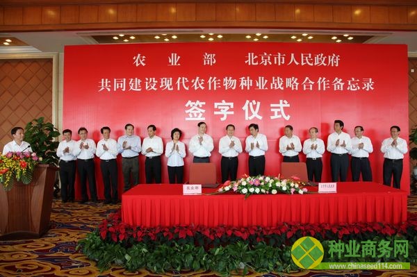 農業部副部長余欣榮與北京市副市長夏占義分別代表雙方簽署《備忘錄》。北京市市委常委牛有成、市政府秘書長孫康林及市農委等有關部門主要負責同志,農業部黨組成員張玉香、總經濟師陳萌山及有關司局主要負責同志出席了簽署儀式。