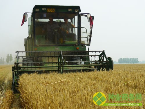 收割機(ji)在“百農矮抗58”大(da)田里作(zuo)業。本網記(ji)者 馮建偉 攝