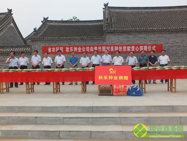 房衛平副院長還充分肯定了河南秋樂種業公司深入踐行“依靠科技進步,服務農業農民”的企業經營理念和扶貧濟困的社會責任感,指出此次捐贈活動是我院和秋樂種業聯手支持駐村幫扶工作的又一重要舉措和生動體現,我院和所控股科技企業將繼續發揮技術和人才優勢,一如既往的做好駐村幫扶的堅強后盾,使焦竹園全體村民盡快走上致富之路。