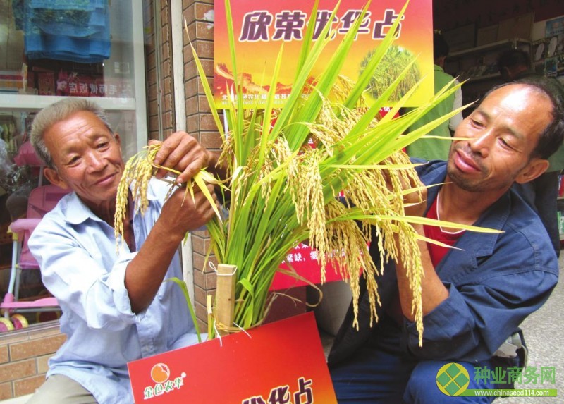 8月23日,新寧縣城一家農資種子店門前,兩名農民正在仔細觀看一個高產雜交水稻品(pin)種(zhong)飽滿(man)的谷穗(sui)。為了讓農民買到(dao)高產(chan)、放心(xin)的水(shui)稻種(zhong)子,這家農資店別出心(xin)裁,將優(you)質高產(chan)雜交(jiao)水(shui)稻谷穗(sui)實物從(cong)田間搬到(dao)店前,并與購種(zhong)農民簽訂(ding)承(cheng)諾書(shu),此(ci)舉受到(dao)農民朋友的歡迎。