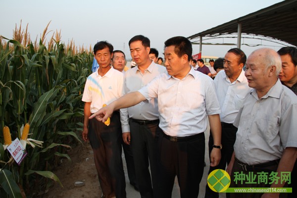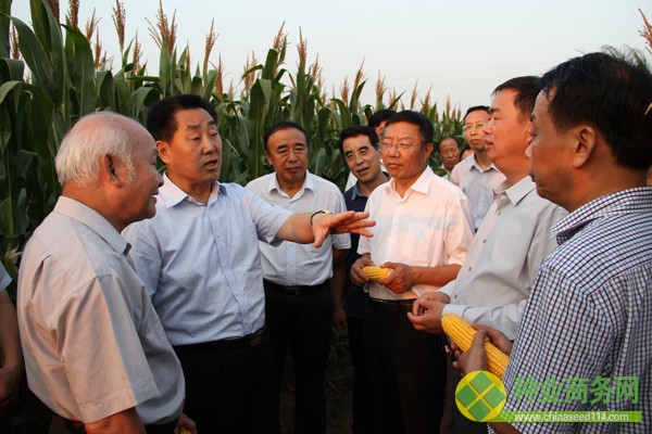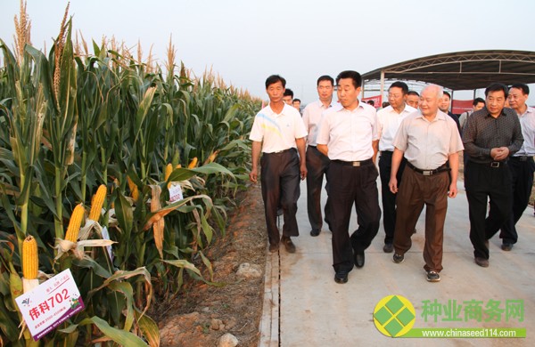 在視察過程中,省委常委、副省長劉滿倉通過與國外品種“先玉335”和國內主導品種“鄭單958”對比,稱贊“偉科702:株型好,穗子大,產量高。劉副省長邊走邊認真觀察,并多次率先鉆入田中間,與專家一起剝穗子、查粒數,與專家探討品種特點特性。當在地頭見到原河南農業大學陳偉程教授,劉滿倉緊緊握著老教授的手,感謝在陳教授(指導下)為玉米生產又培育了一個突破性的品種。