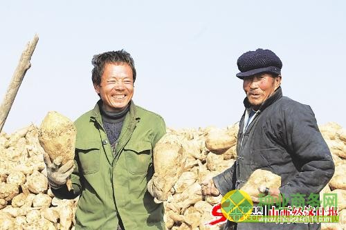 “現在種甜菜,省時省力,還賺錢,甜菜真是甜到俺們的心里頭啦!”。11月9日,懷仁縣毛皂鎮邊店村常江老人和兒子常和平,一邊在甜菜收購點卸甜菜,一邊高興地對記者說道。據了解,從去年冬天開始,大同糖廠就和懷仁縣毛皂鎮的甜菜種植戶簽訂了種銷合同,并提前把優質的種子和地膜發放到了農戶手中,有效地帶動了該鎮農民種植的積極性。如今,毛皂鎮的甜菜種植面積達到6000多畝,已成為該鎮農民增加收入的重要途徑。