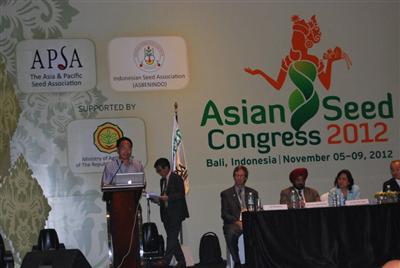 2012年亞太種子年會于11月4-9日在印尼巴厘島召開,中國種子協會作為新會員首次應邀率團參加年會。此次年會是歷屆規模最大,有來自45個國家 1015人參會,其中,中國代表170多人,占百分之十七,是參會參展人數最多的國家。中國種子協會理事、天津黃瓜所所長杜勝利在激烈的競爭中獲勝當選為執委。會議期間,中國種子協會還召開了中國---亞太國家種子協會座談會,交流了各國水稻種子檢疫、質量標準、技術需求、種質資源等行業信息, 推進國家間、協會間和會員間的深入合作,促進亞太種業持續發展。(秘書處供稿)