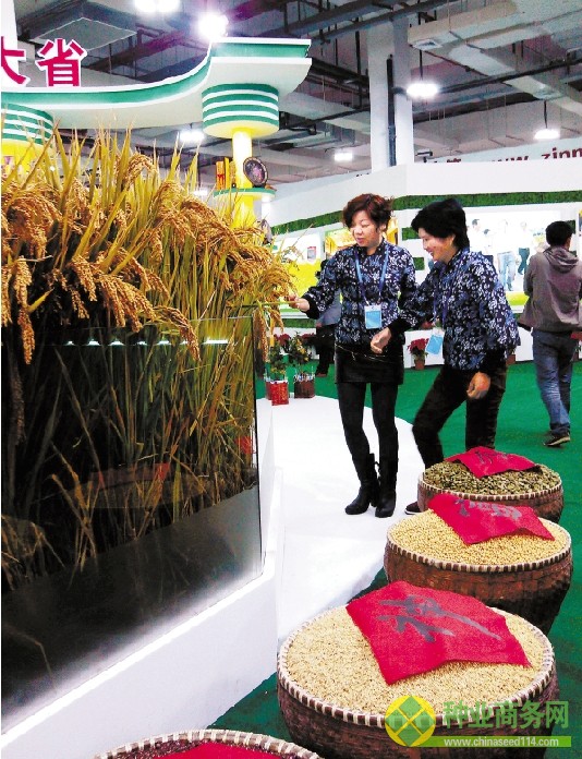 作為江浙一帶的主要糧食作物,稻米是農博會最受關注主角之一。“這種紅糯米,是通過水稻和高粱雜交培育出來的,產量也比較高。”紅糯米的培育者富陽農技員汪士偉說,今年他跟當地種糧大戶合作的紅糯稻畝產超過了1000斤。