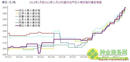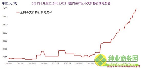由上面的走勢圖可以看出,自9月份以來,全國小麥價格震蕩上漲,11月之后增長之勢更加迅猛。