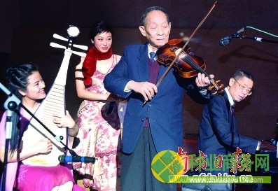 2005年,袁隆平執小提琴與鋼琴演奏家聯袂演奏《我的祖國》。
