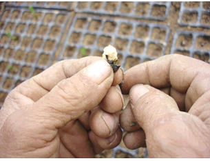 包超波指(zhi)出(chu),廣東傳統以(yi)種(zhong)(zhong)植油瓜為(wei)主,種(zhong)(zhong)子(zi)種(zhong)(zhong)皮相對(dui)較薄,農戶對(dui)催芽(ya)(ya)技(ji)術(shu)重視(shi)度不夠。而珍珠瓜種(zhong)(zhong)子(zi)屬于(yu)厚殼(ke)類,發芽(ya)(ya)相對(dui)較慢(man),特(te)別是今年制種(zhong)(zhong)因(yin)天氣因(yin)素導致種(zhong)(zhong)子(zi)種(zhong)(zhong)皮厚于(yu)往年,“可以(yi)通過為(wei)種(zhong)(zhong)子(zi)剪口(kou)、植物(wu)激素浸種(zhong)(zhong)和(he)種(zhong)(zhong)子(zi)消毒三個措(cuo)施提高出(chu)芽(ya)(ya)率。”