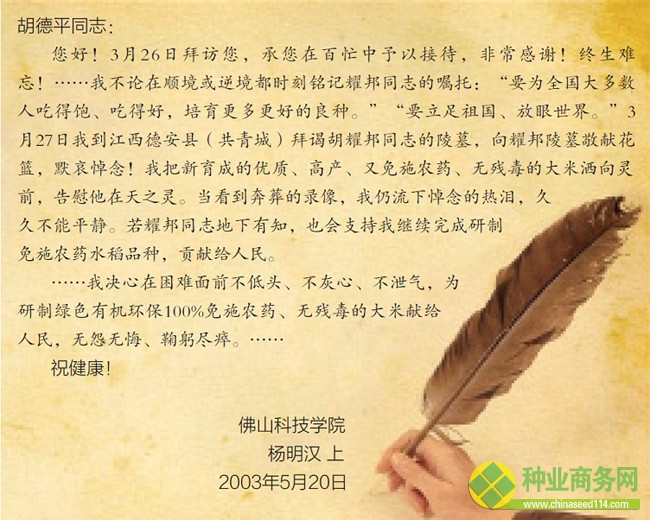 給胡耀邦同志兒子的信件 [《農財寶典》授權中國種業商務網發布]
