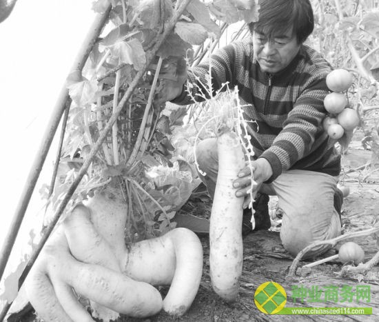楊敏杰告訴記者,因為聽說白蘿卜營養價值高,于是注重養生的她就在自家的西紅柿大棚角落里,種了近百棵白蘿卜。“種子是在大連買的,在蘿卜的成長期,意外發現了這棵長相奇怪的蘿卜。 ”楊敏杰說,當時這棵蘿卜長了四條“腿”,像一匹趴在地上的馬。幾個月過去了,白蘿卜一直沒有停止生長,竟然長出了八條“腿”。 記者陳琳琳 文/圖