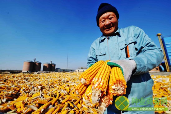 在黑龍江省海倫市勝利糧庫,農民在展示晾曬的玉米 資料圖