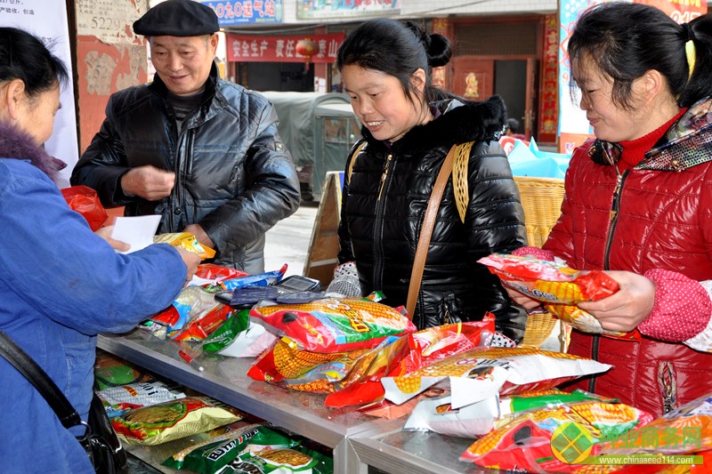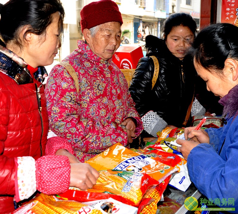 初五(2月14日)以來,永順縣農民都在忙著購買自己歡喜的稻谷和玉米種子,以達今年又能(neng)獲得好收成(cheng)。圖為(wei)2月22日中午,靈溪鎮(zhen)的一些農(nong)民在縣城“隆平高科種(zhong)子連鎖店”選(xuan)購種(zhong)子。