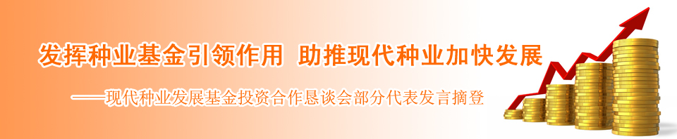 今年初,根據《國務院關于加快推進現代農作物種業發展的意見》精神,財政部、農業部、中國中化集團和中國農業發展銀行合作設立現代種業發展基金,并在國家工商總局注冊成立了現代種業發展基金有限公司。作(zuo)為(wei)我(wo)國(guo)唯一一支具(ju)有政(zheng)府背景、采用(yong)市場(chang)化運(yun)作(zuo)、定向(xiang)用(yong)于種(zhong)業(ye)發(fa)展(zhan)的產業(ye)基(ji)金,現代種(zhong)業(ye)發(fa)展(zhan)基(ji)金將如何發(fa)揮(hui)財政(zheng)資(zi)(zi)金示范和引領(ling)作(zuo)用(yong),帶動社會資(zi)(zi)本投入種(zhong)業(ye)領(ling)域,促進(jin)現代種(zhong)業(ye)發(fa)展(zhan)?日前,現代種(zhong)業(ye)發(fa)展(zhan)基(ji)金有限(xian)公司(si)邀請國(guo)內(nei)14家知名種(zhong)業(ye)企業(ye)在山(shan)東省濟(ji)南(nan)市舉行(xing)投資(zi)(zi)合作(zuo)懇談會。今日,本刊特摘編(bian)部分與會代表(biao)發(fa)言(yan),以期促進(jin)交流,深化認(ren)識,推(tui)動資(zi)(zi)本與產業(ye)合作(zuo)共(gong)贏。(圖片由何創提供)