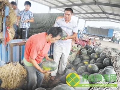 以上情況記者在安慶紀那里得到證實。他說:“今年廣州、深圳的客商都到湖北宜城進西瓜,一個沒有來,南昌的一位客商進第一車西瓜時賣得很慢,一天才賣了350公斤,進第二車西瓜時由于是生瓜,根本不好賣,賠了3000元,就不來了!”