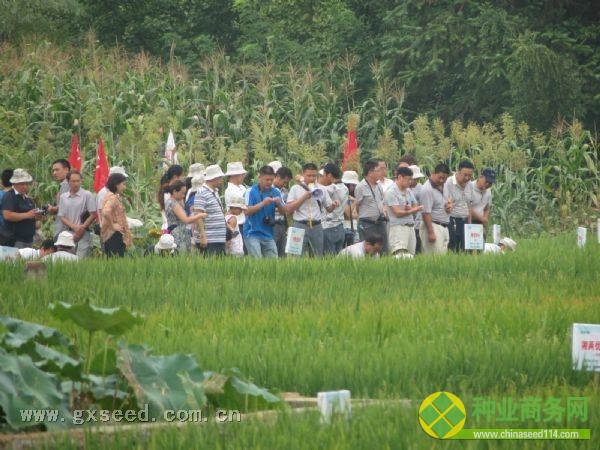 廣西第十屆“看禾選種,助農增收”活動桂北現場自7月23日開幕以來,陸續迎來八方來客。除啟動儀式當天參觀的約1000客人以外,近日來“看禾選種”桂北現場共迎接參觀客人近1000人次。這些客人有的是周邊農戶,有的是廣西區內企業組織的經銷商,更有外省種子企業,如湖南秀華種業組織了來自湖南、湖北的種子經銷商80多人,專門租借大巴長途跋涉到現場參觀;現場得到了企業代表的高度評價。