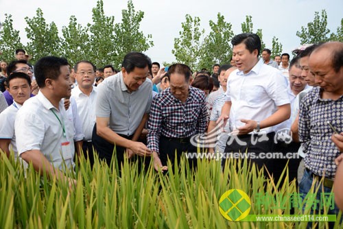 本報訊(記者余紅舉)“按照計劃目標,超級水稻2020年實(shi)現畝產(chan)1000公斤,崇仁縣(xian)超(chao)級(ji)(ji)雜(za)交水稻生產(chan)基(ji)地(di)爭(zheng)取2015年實(shi)現這(zhe)一目(mu)標。”9月(yue)4日(ri),中國工程(cheng)院(yuan)院(yuan)士、雜(za)交水稻之(zhi)父袁隆(long)平,來到(dao)崇仁縣(xian)郭圩鄉(xiang)貫(guan)橋村時充(chong)滿信(xin)心。據悉,這(zhe)里(li)是袁隆(long)平超(chao)級(ji)(ji)雜(za)交水稻第四期1000公斤攻關項目(mu)在我(wo)省(sheng)的唯一基(ji)地(di)。