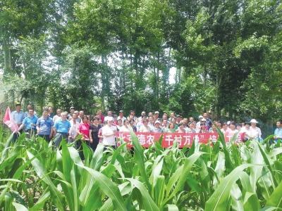 圖為北京德農種業“千村萬戶培訓工程”的受訓農民在觀摩PPT品種定位試驗田。