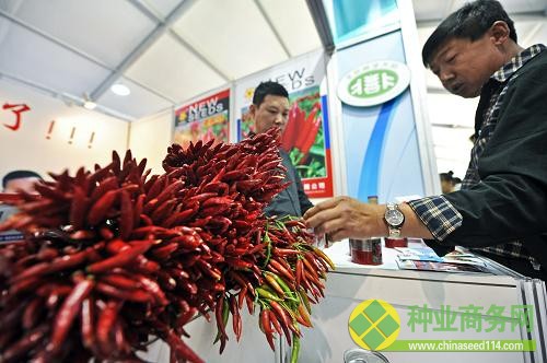 9月(yue)25日,消費者在第21屆北京種(zhong)子大會上了解辣椒(jiao)新(xin)品種(zhong)。新(xin)華社發(fa)(王(wang)京生 攝)
