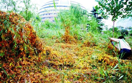 在鄭東新區省(sheng)藝(yi)術中心(xin)附近的(de)蘆(lu)葦(wei)叢(cong)里發現大片(pian)野生大豆