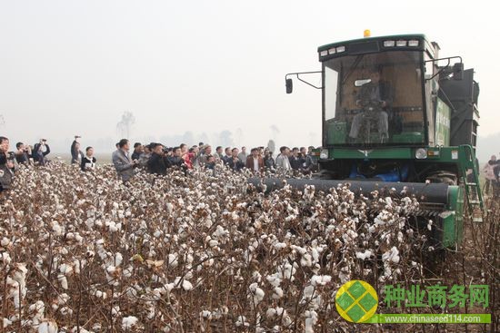 此次現場會采用了農業部南京農機化所研制的國產新型采棉機,采凈率達到93%。近年來,兩所緊密配合,把握棉花機械化采摘的發展趨勢,發揮各自的專業優勢,聯合攻關,重點圍繞黃河流域和長江流域棉區機采棉的農藝農機配套開發,相繼攻克棉花機械采摘的品種選擇、栽培模式篩選及其標準化、采摘機械的輕簡化等技術難題,取得了明顯進展,將為全國,特別是內地,棉花生產的穩定發展起到關鍵性作用。據了解,這種自走復指桿式采棉機每小時可采收10畝地左右。批量生產后,每臺價格約30多萬元,僅為進口機型的十分之一左右,適應不同的棉花種植模式,結構簡單,性能優越,可滿足我國廣大棉區輕簡收獲的需求,在河南、山東、河北、新疆以及南方棉區具有廣闊的發展前景。