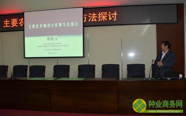 栗根義教授分別從小麥太谷核不育(Tal)基因克隆與不育系創造、玉米主要親本遺傳關系分析、主要性狀基因定位與MAS、棉花遺傳多樣性分析及雜優利用、油菜基因克隆與設計育種四個方面詳細介紹了其研究團隊的工作進展,并與部分到會人員就一些具體的科研問題進行了熱烈的探討。