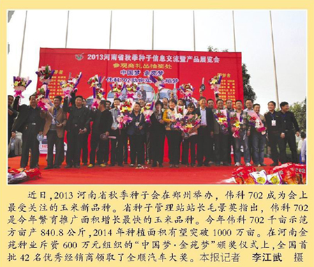 ——2013河南省秋季種子展覽會金苑種業斥資600萬元頒獎紀實