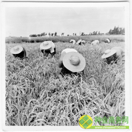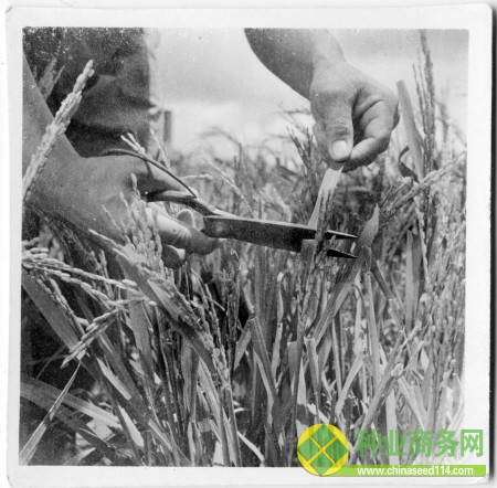 稻子成熟了,到了收獲的季節,一行行母本或父本種植的稻谷,要分別收割。 這是當年我們彎下腰,用鐮刀收割父本雜優稻種的情形。