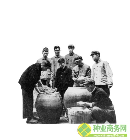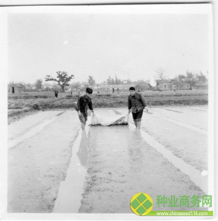 ↓在湛江,我們按照長沙縣傳統種植水稻的方法,在種植之前,先把帶來的雜交水稻父本和母本稻種分別進行浸種消毒。當稻種吸水達到原來谷重的20%時,稻種的胚芽就開始萌動,蘇醒過來。浸種時,需把鹽水兌成一定的比例,同時進行藥劑殺毒。經過浸種消毒后的稻種,出芽整齊,有了“健康的身體”,禾苗在以后的生長中就減少了病害。現在湖南稻種消毒,多半已采用蒸汽法消毒。