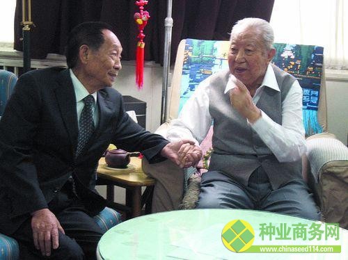 2006年6月9日,袁隆平院士在京開會期間,去華國鋒同志家中探望,兩人手拉手,親切交談。
