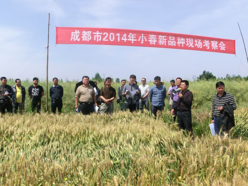 市種子管理站5月5日組織召開了成都市2014年小春新品種現場考察暨農作物品種權保護現場咨詢培訓會。市農委種植業處、市農技總站、市農林科學院作物所負責同志及專家、各區(市)縣種子管理站站長、供種單位代表、承試人員70余人參加了會議。