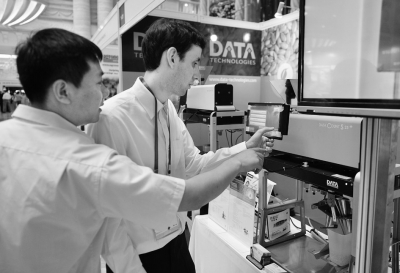 圖③在第75屆世界種子大會上,各國客商帶來了一些種子加工設備,來自以色列的廠商正在示范種子分裝設備的操作。
